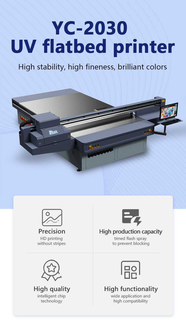 NTEK YC2030H UV Printer is a type of hi-precision UV flatbed printer specially designed for personalized processing enterprises to meet their high accuracy and personalized requirements.