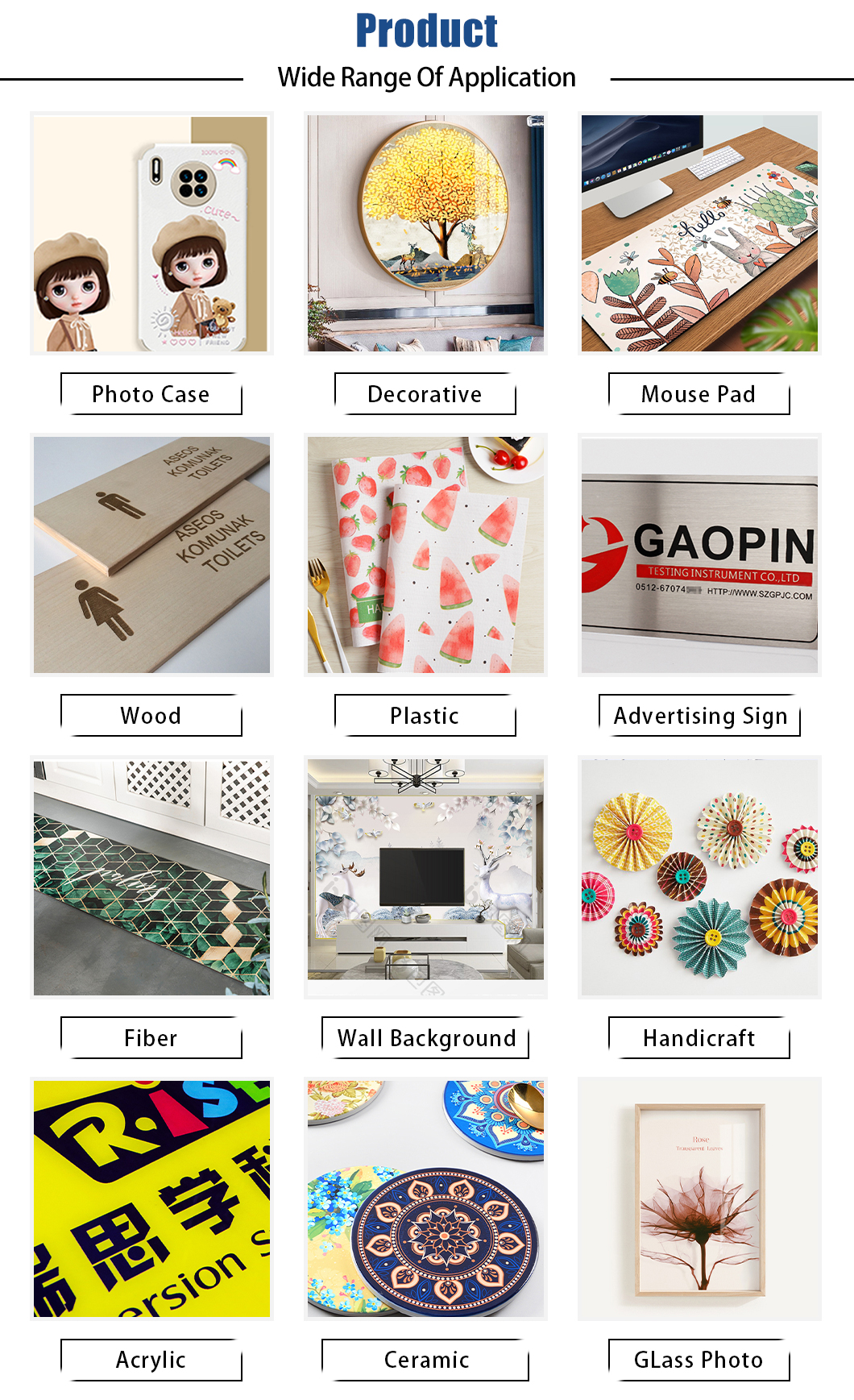 Can print on Glass, Metal, Ceramic Tiles, PVC, Acrylic, Leather, Plastic, Wood, etc.